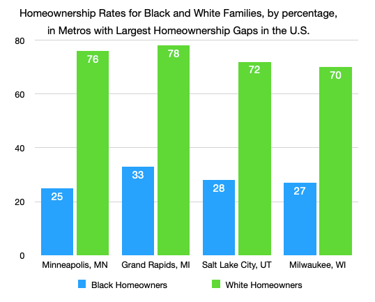 Minneapolis now has the worst homeownership gap between white and Black people in the United States: While 76% of white families are homeowners, only a quarter of Black families own their home.